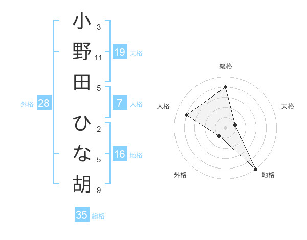 小野田 ひな胡さんを姓名の画数から五運を鑑定