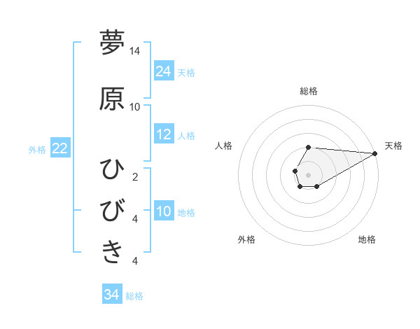 夢原 ひびきさんの天格は24画の5点!
