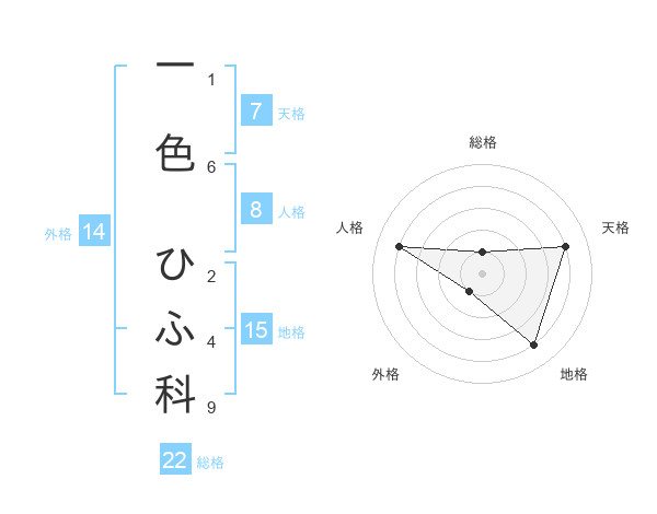 一色 ひふ科さんの総格は22画の1点!