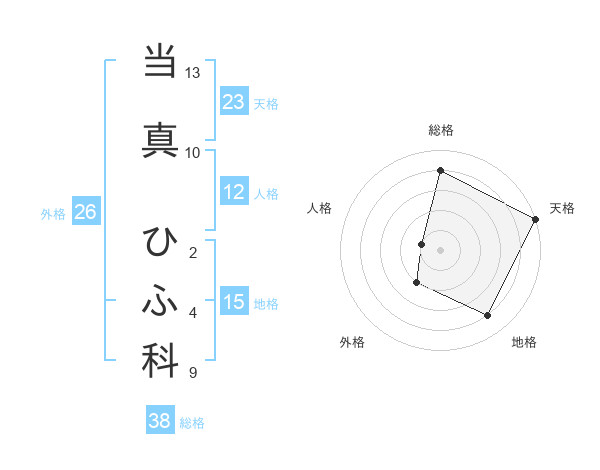 当真 ひふ科さんを姓名の画数から五運を鑑定