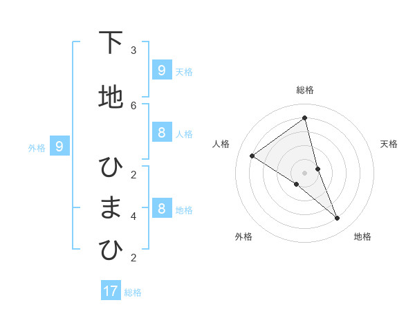 下地 ひまひさんを姓名の画数から五運を鑑定