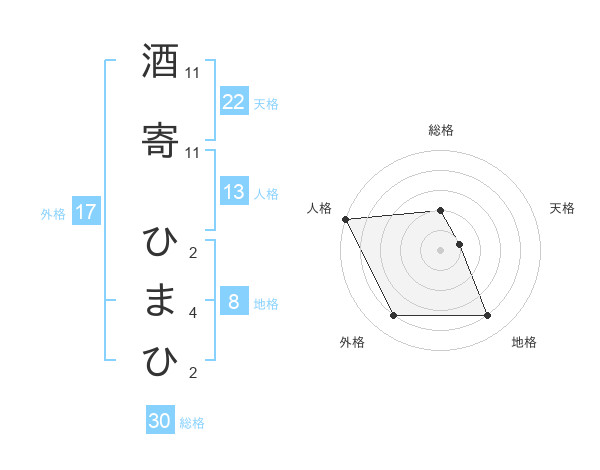 酒寄 ひまひさんを姓名の画数から五運を鑑定