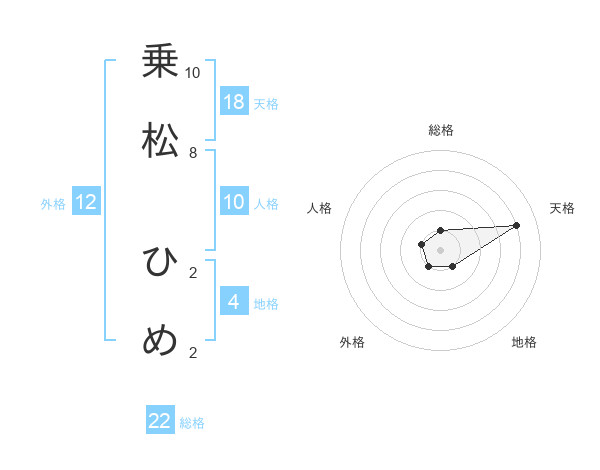 乗松 ひめさんの天格は18画の4点!