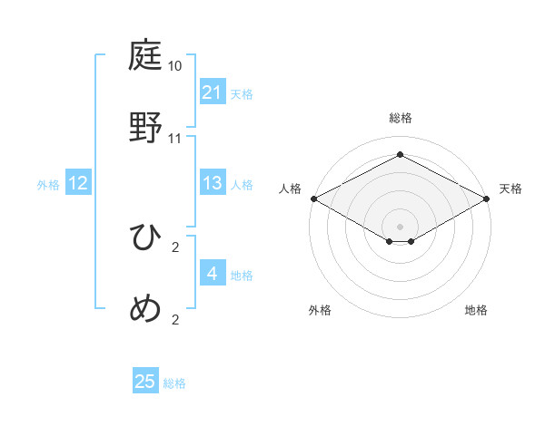 庭野 ひめさんの天格は21画の5点!