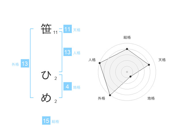 笹 ひめさんの外格は13画の5点!