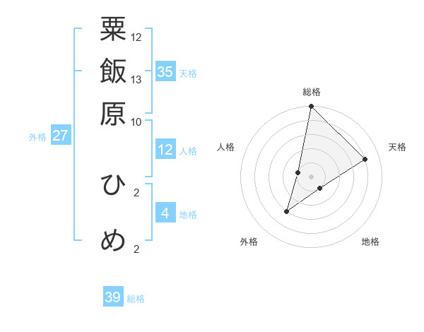 粟飯原 ひめさんを姓名の画数から五運を鑑定