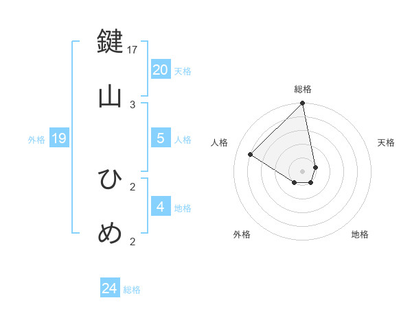 鍵山 ひめさんを姓名の画数から五運を鑑定