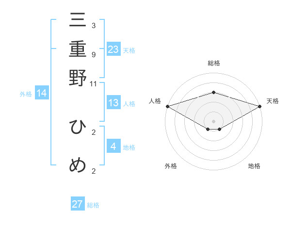三重野 ひめさんを姓名の画数から五運を鑑定