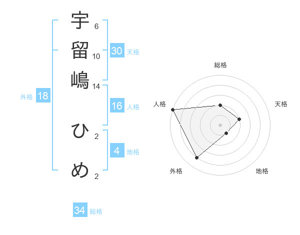 宇留嶋 ひめさんを姓名の画数から五運を鑑定