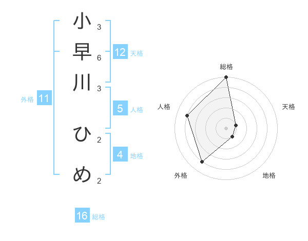 小早川 ひめさんを姓名の画数から五運を鑑定