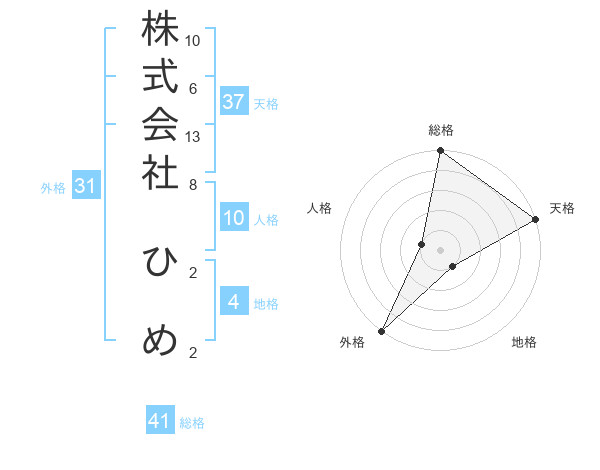 株式会社 ひめさんの総格は41画の5点!