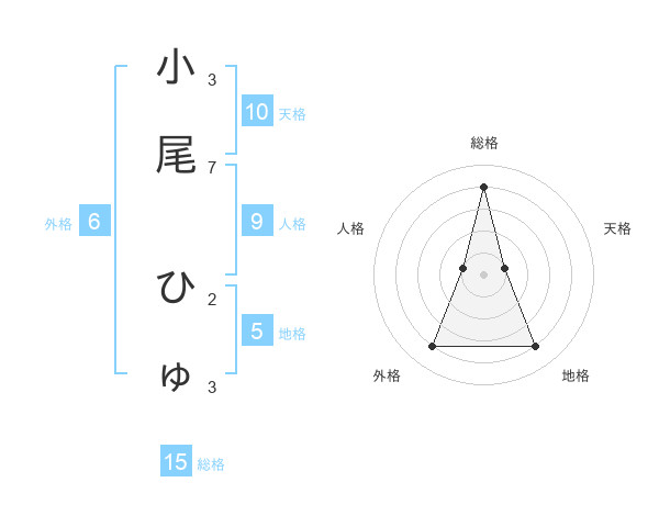 小尾 ひゅさんの総格は15画の4点!
