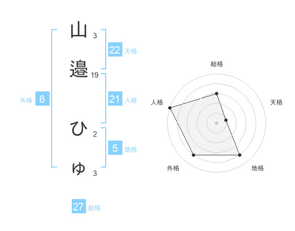 山邉 ひゅさんの総格は27画の3点!
