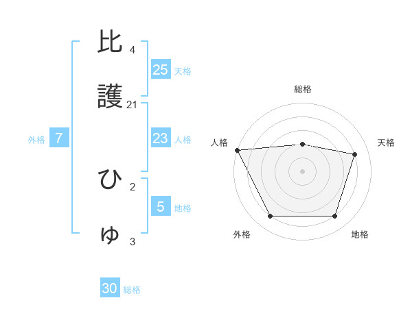 比護 ひゅさんを姓名の画数から五運を鑑定