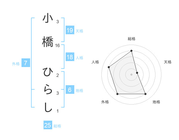 小橋 ひらしさんを姓名の画数から五運を鑑定