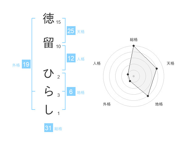 徳留 ひらしさんの総格は31画の5点!