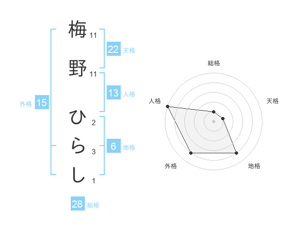 梅野 ひらしさんの外格は15画の4点!