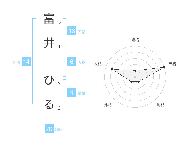 富井 ひるさんの総格は20画の1点!