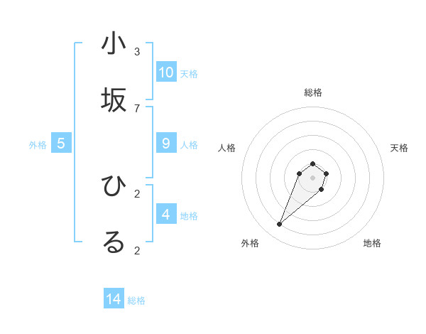 小坂 ひるさんを姓名の画数から五運を鑑定