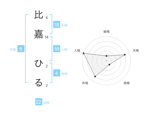 比嘉 ひるさんの総格は22画の1点!