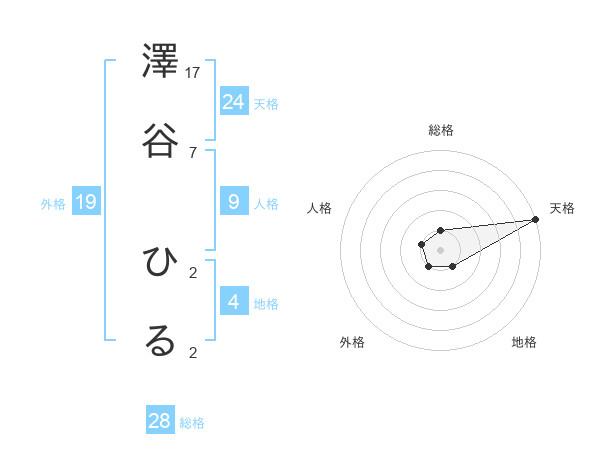 澤谷 ひるさんの総格は28画の1点!