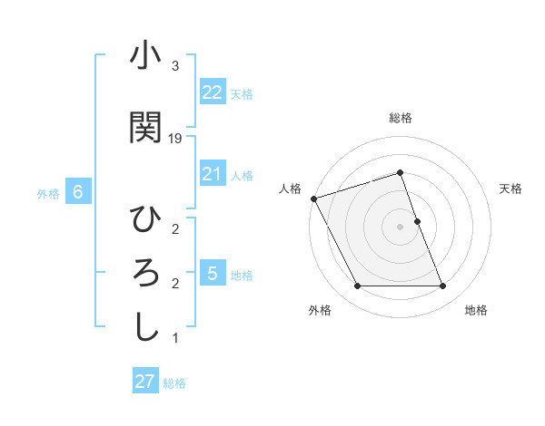 小関 ひろしさんを姓名の画数から五運を鑑定