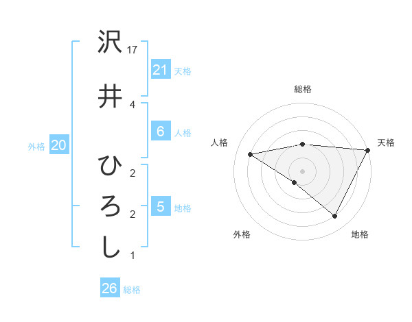 沢井 ひろしさんを姓名の画数から五運を鑑定