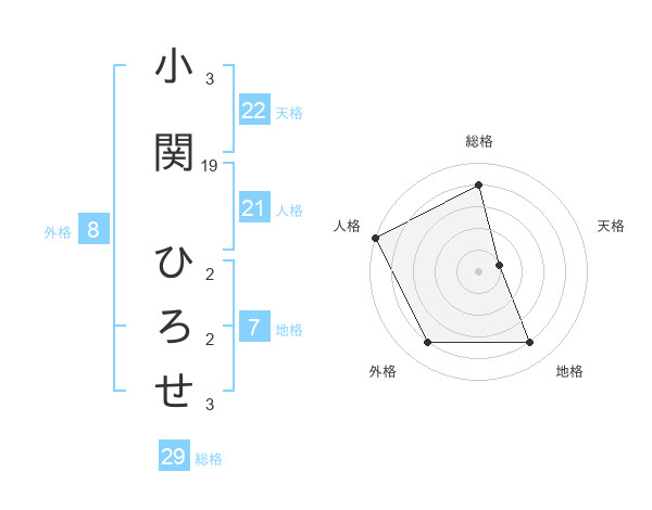 小関 ひろせさんを姓名の画数から五運を鑑定