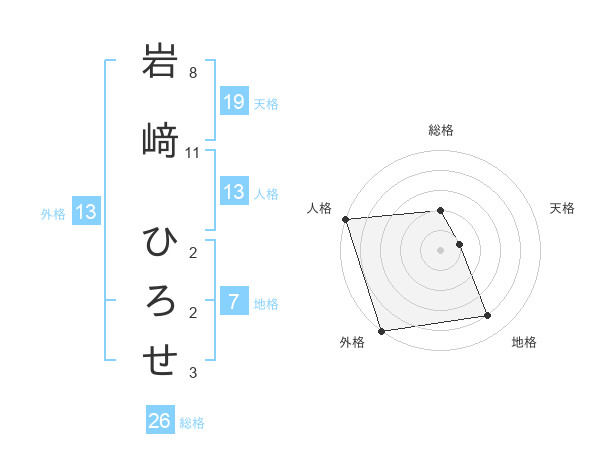 岩﨑 ひろせさんを姓名の画数から五運を鑑定