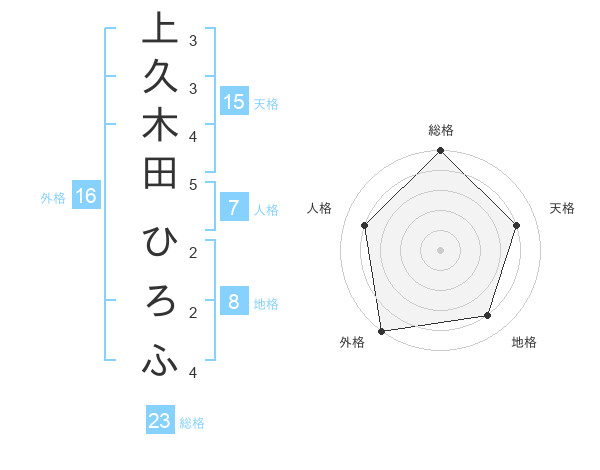 上久木田 ひろふさんを姓名の画数から五運を鑑定