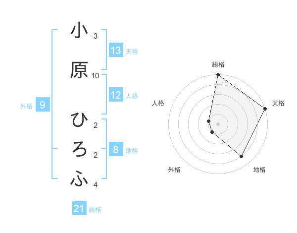 小原 ひろふさんの総格は21画の5点!