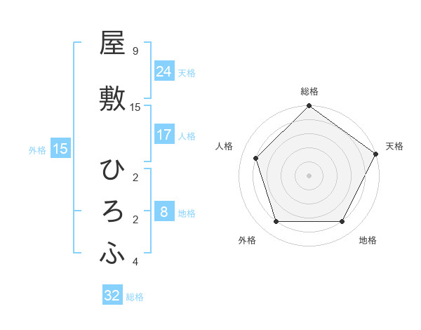 屋敷 ひろふさんを姓名の画数から五運を鑑定