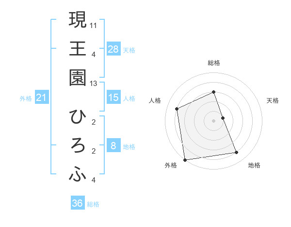 現王園 ひろふさんを姓名の画数から五運を鑑定