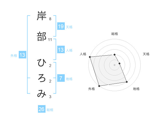 岸部 ひろみさんを姓名の画数から五運を鑑定
