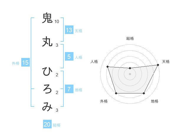 鬼丸 ひろみさんの天格は13画の5点!