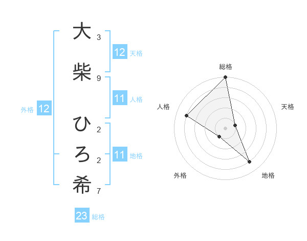 大柴 ひろ希さんの天格は12画の1点!