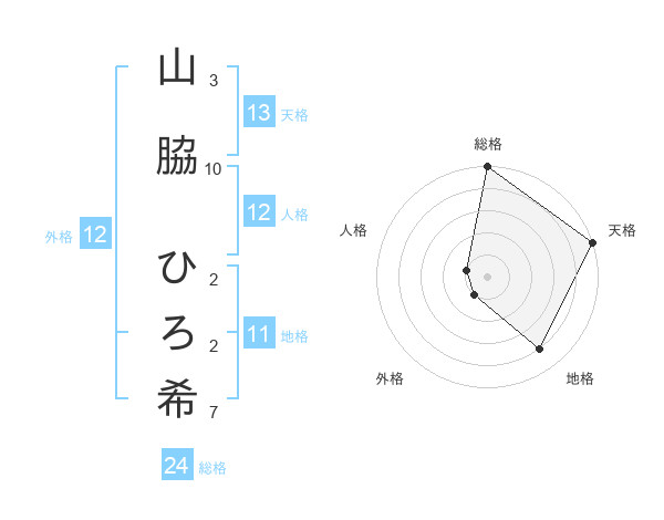 山脇 ひろ希さんの天格は13画の5点!