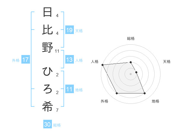日比野 ひろ希さんを姓名の画数から五運を鑑定