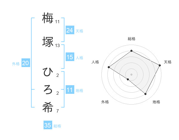 梅塚 ひろ希さんを姓名の画数から五運を鑑定