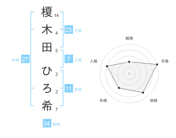 榎木田 ひろ希さんの天格は23画の5点!