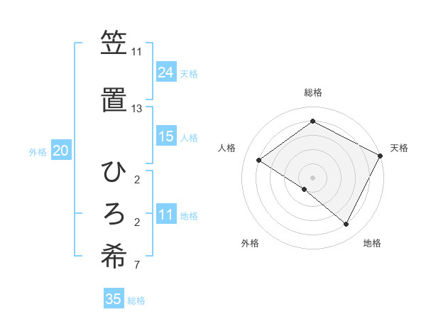 笠置 ひろ希さんを姓名の画数から五運を鑑定