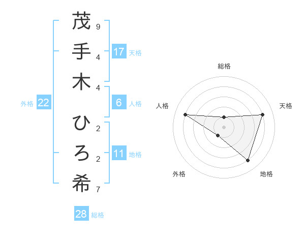 茂手木 ひろ希さんを姓名の画数から五運を鑑定