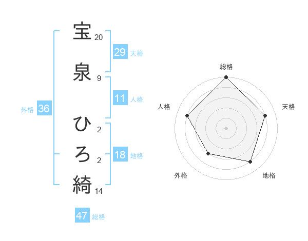 宝泉 ひろ綺さんを姓名の画数から五運を鑑定