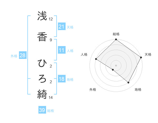 浅香 ひろ綺さんを姓名の画数から五運を鑑定