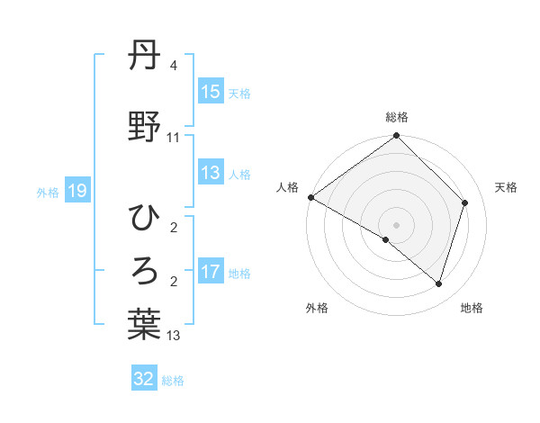 丹野 ひろ葉さんを姓名の画数から五運を鑑定