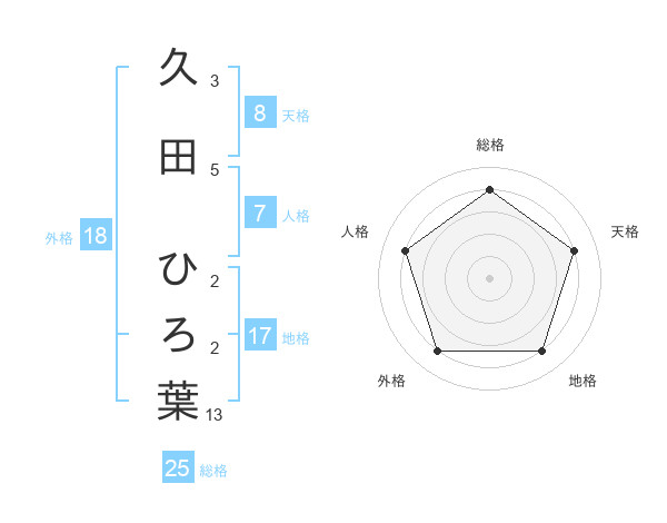 久田 ひろ葉さんを姓名の画数から五運を鑑定