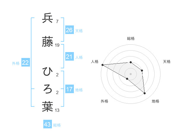 兵藤 ひろ葉さんを姓名の画数から五運を鑑定