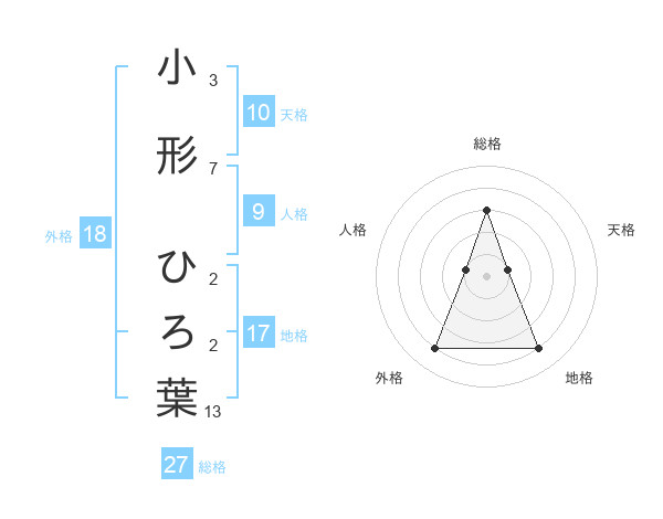 小形 ひろ葉さんの総格は27画の3点!