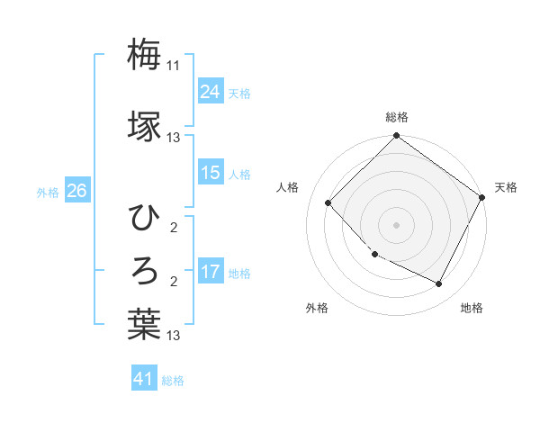 梅塚 ひろ葉さんを姓名の画数から五運を鑑定