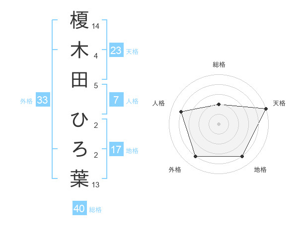 榎木田 ひろ葉さんの天格は23画の5点!